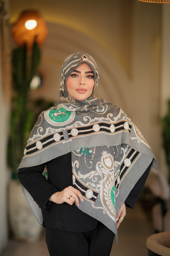 روسری کشمیر طرح سینیوریتا مشکی طوسی