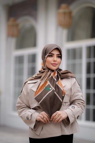 روسری ابریشم ژاکارد طرح کمربندی هرمس قهوه ای