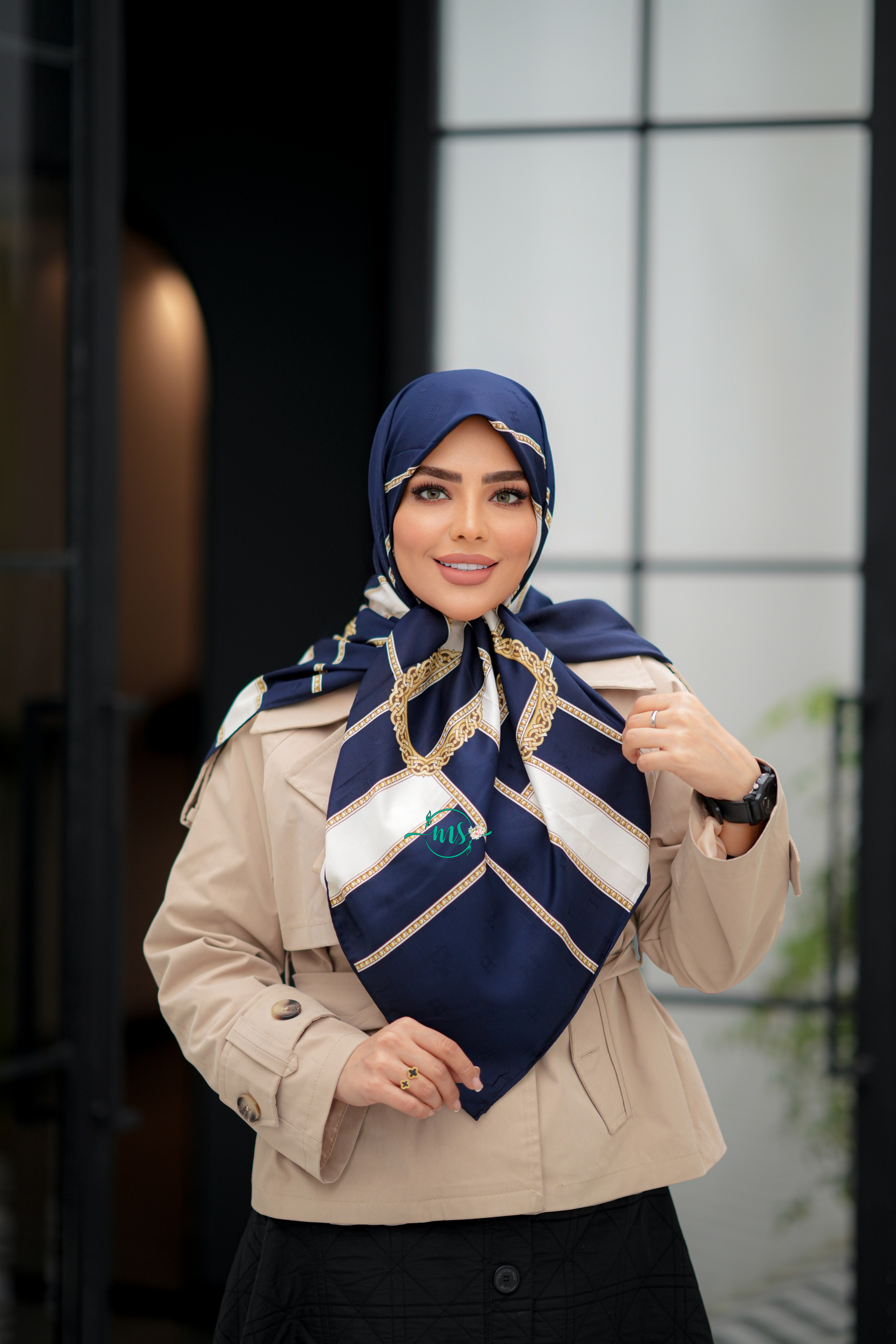 روسری طرح کمربندی وسط ساده سرمه ای طلایی
