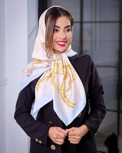 روسری نخ ابریشم ژاکارد طرح شنل کرم طلایی
