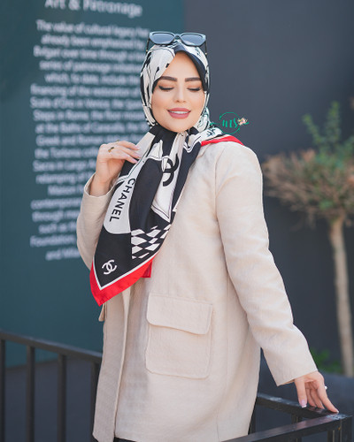 روسری ابریشم ژاکارد طرح شنل سفید مشکی