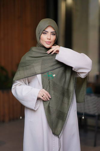 روسری پلیسه منگوله دست ساز سبز ارتشی