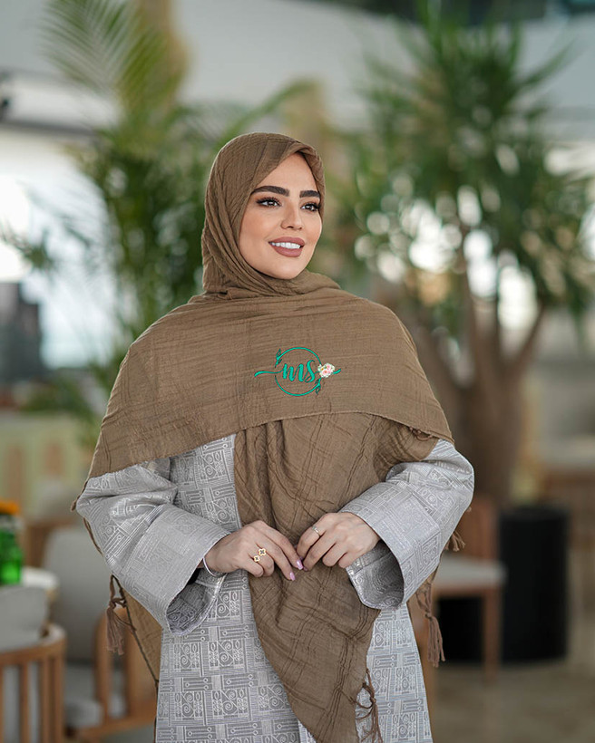 روسری پلیسه منگوله دست ساز قهوه ای