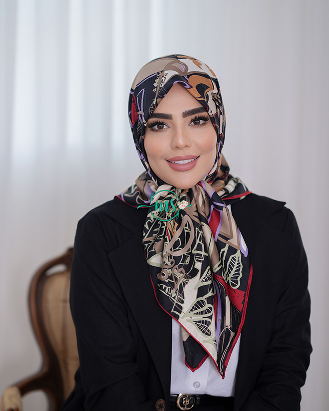روسری ابریشم ژاکارد طرح هرمس کوبیسم رنگ مشکی قرمز