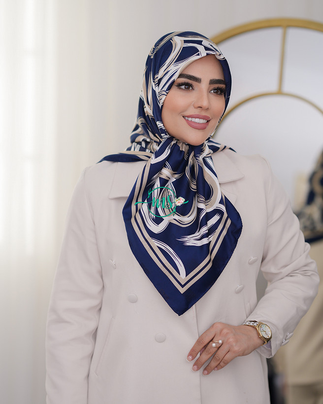 روسری ابریشم ژاکارد طرح گل رنگ سرمه ای