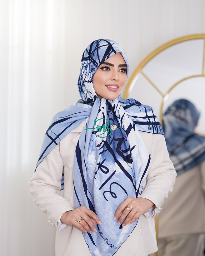 روسری ابریشم ژاکارد طرح اسکیس رنگ سرمه ای