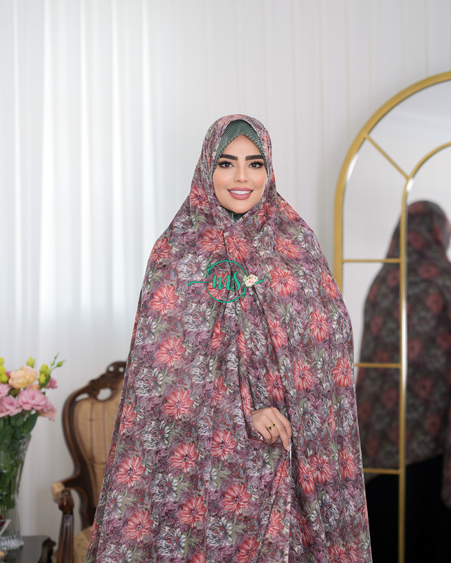 چادر قواره ای وال هندی طرح گل رنگ بنفش کد 5605