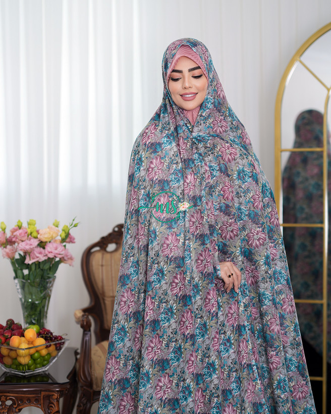 چادر قواره ای وال هندی طرح گل رنگ فیروزه ای کد 5606