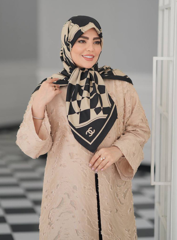 روسری ابریشم ژاکارد طرح شنل مشکی کرم تیره