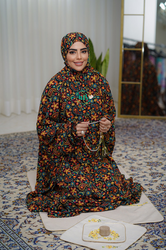 چادر نماز آستین دار کدری 105 زمینه مشکی