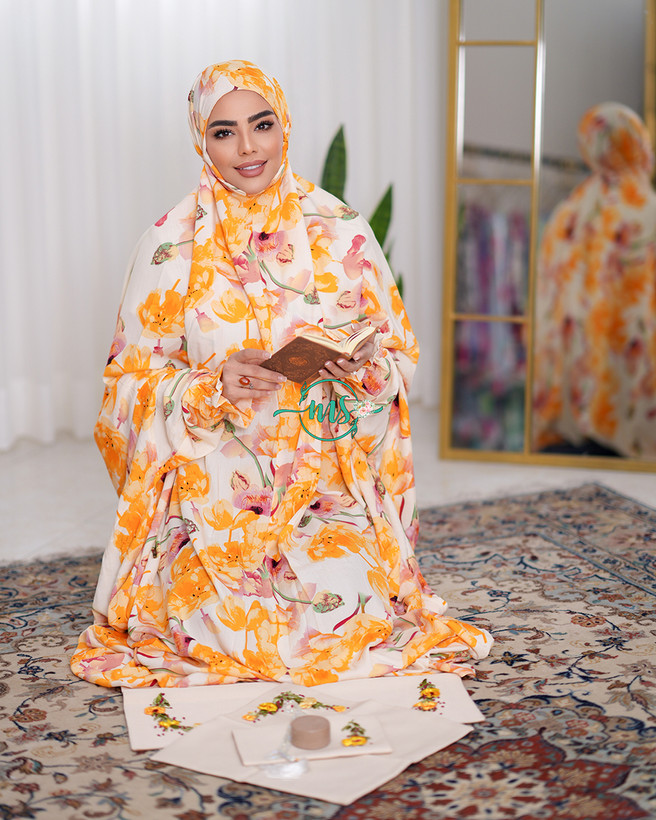 چادر نماز آستین دار کدری 124 زمینه شیری