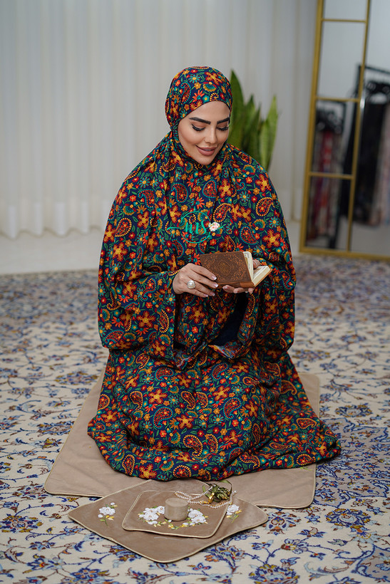 چادر نماز کیسه ای کدری 73 زمینه سرمه ای
