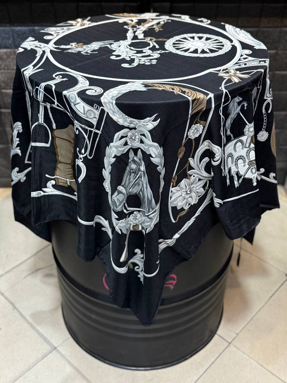 روسری کشمیر طرح هرمس اسب و حلقه رنگ طوسی شکلاتی