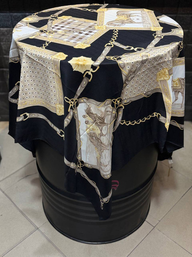 روسری کشمیر طرح باربری رنگ مشکی طلایی
