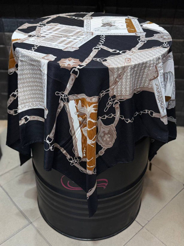 روسری کشمیر طرح باربری رنگ طوسی قهوه ای