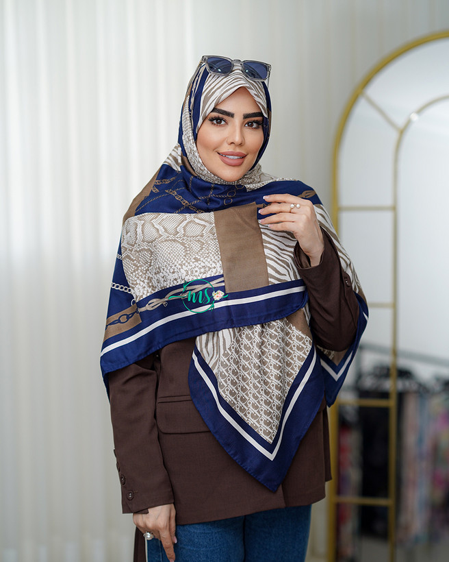 روسری کشمیر طرح زبرا رنگ آبی قهوه ای