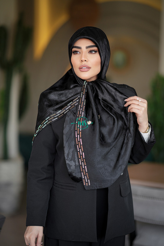 روسری ابریشم ژاکارد طرح خط خط نگین دار 7 رنگ