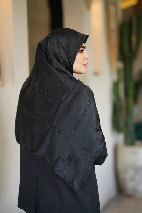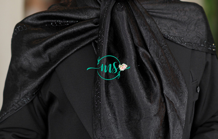 روسری ابریشم ژاکارد طرح ترمه نگین دار مشکی