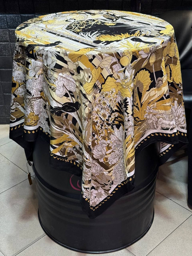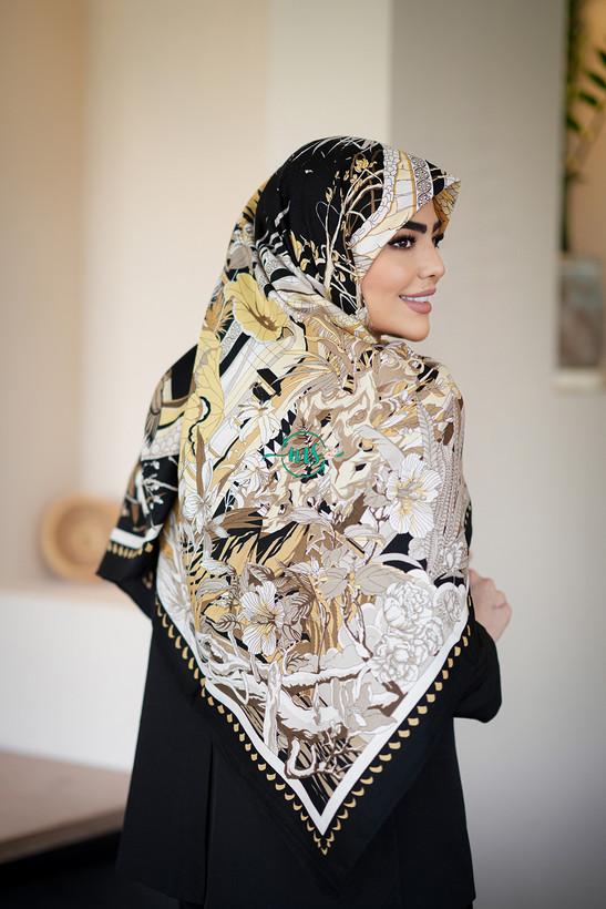 روسری کشمیر طرح بهشت رنگ مشکی طلایی