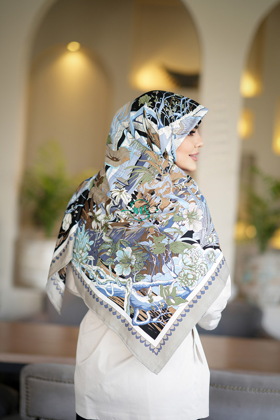 روسری کشمیر طرح بهشت رنگ طوسی آبی