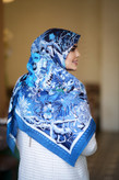 روسری کشمیر طرح بهشت رنگ آبی