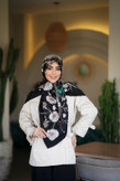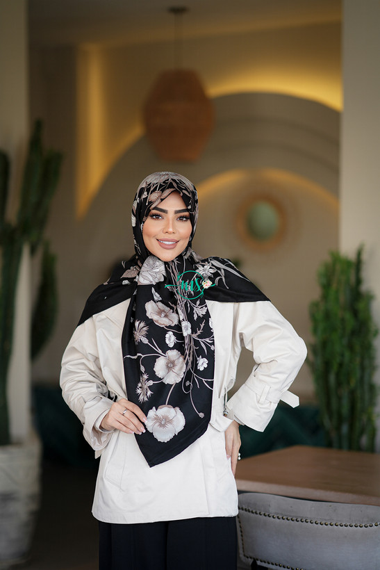 روسری کشمیر طرح گل دلبر گوچی رنگ مشکی طوسی