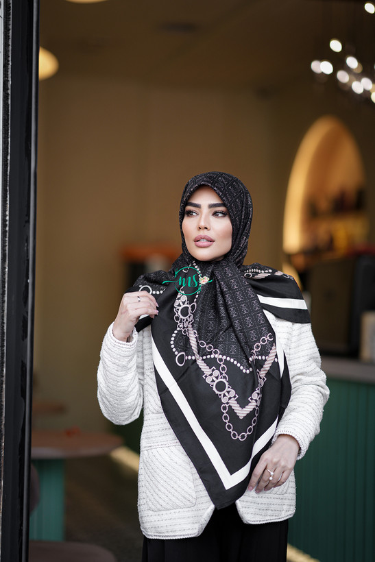 روسری کشمیر طرح گس رنگ مشکی کرم