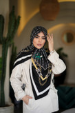 روسری کشمیر طرح گس رنگ مشکی سفید طلایی
