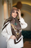 روسری کشمیر طرح گس رنگ قهوه ای طلایی
