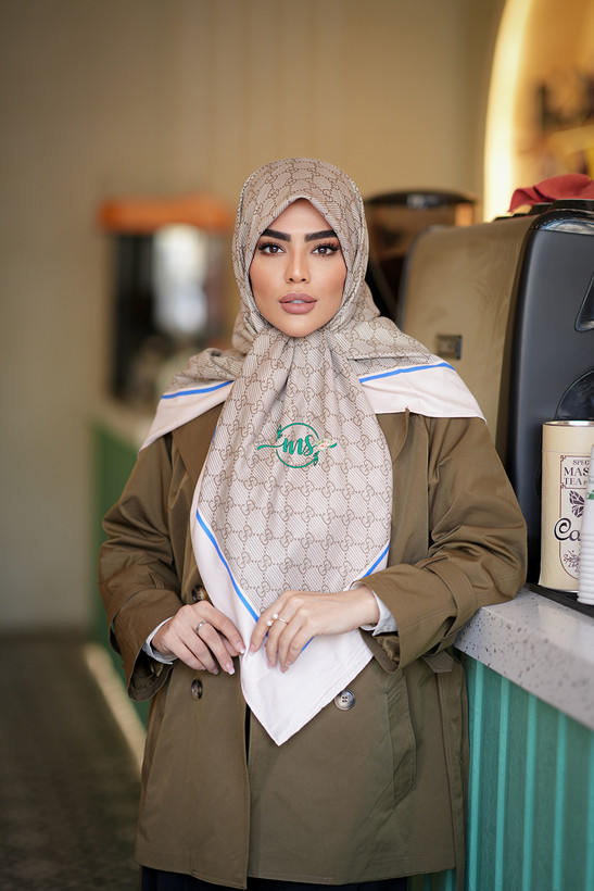 روسری کشمیر طرح گوچی رنگ کرم صورتی