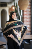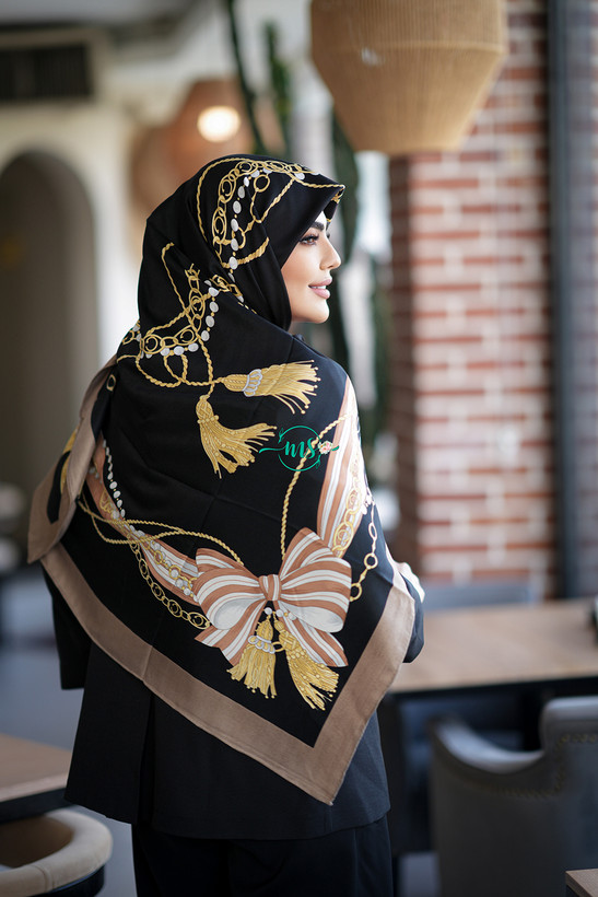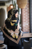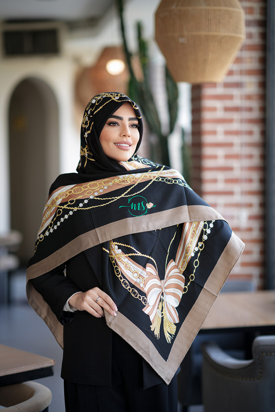 روسری کشمیر طرح پاپیون رنگ مشکی طلایی شکلاتی