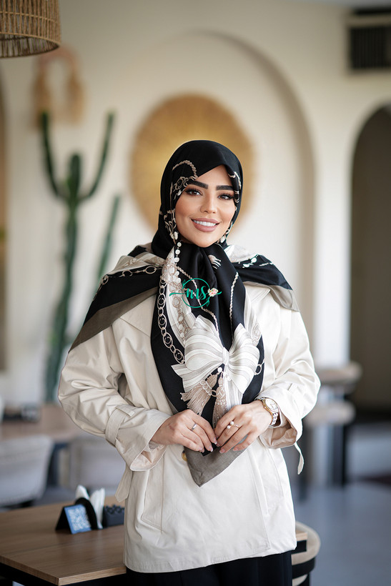 روسری کشمیر طرح پاپیون رنگ مشکی کرم روشن