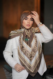 روسری ابریشم ژاکارد اکر طرح کلاسیک وسط ساده رنگ قهوه ای