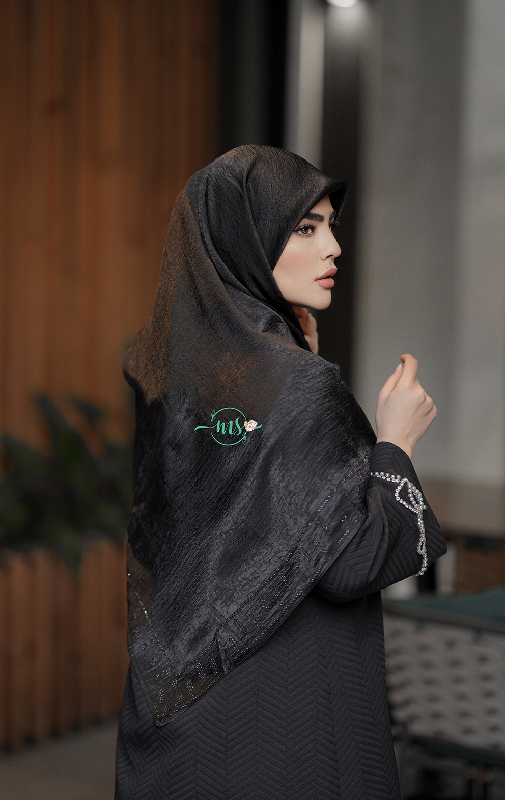 روسری ابریشم نگین دار مربعی