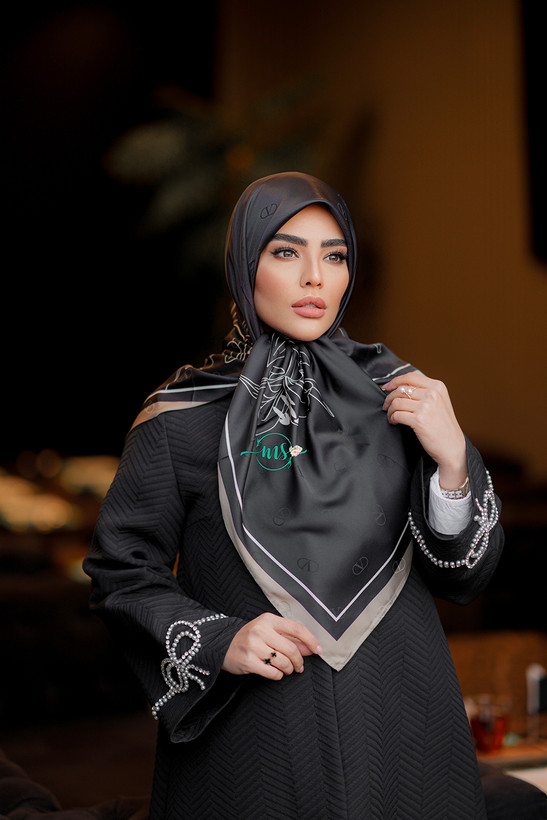 روسری ابریشم ژاکارد طرح گل لیلیوم والنتینو رنگ مشکی کرم
