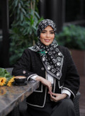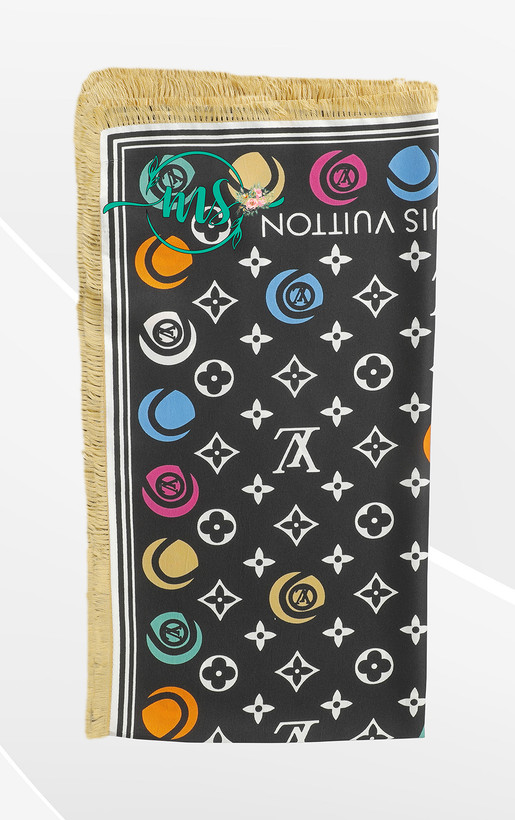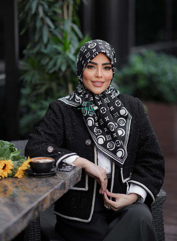 روسری ابریشم طرح ال وی رنگ سفید مشکی