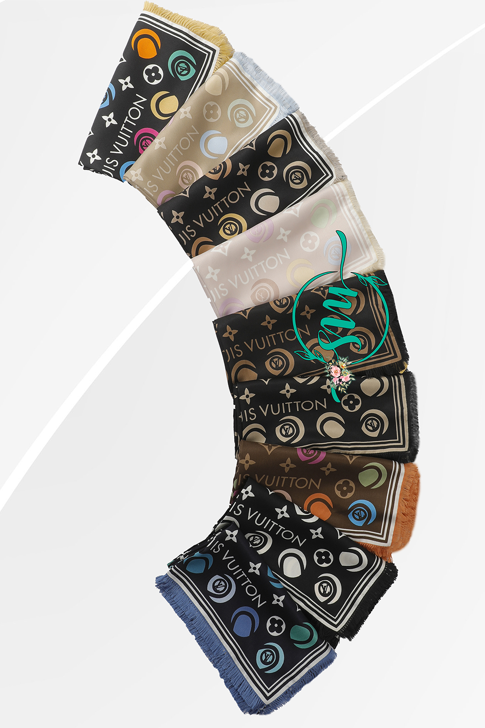 روسری ابریشم طرح ال وی رنگ قهوه ای