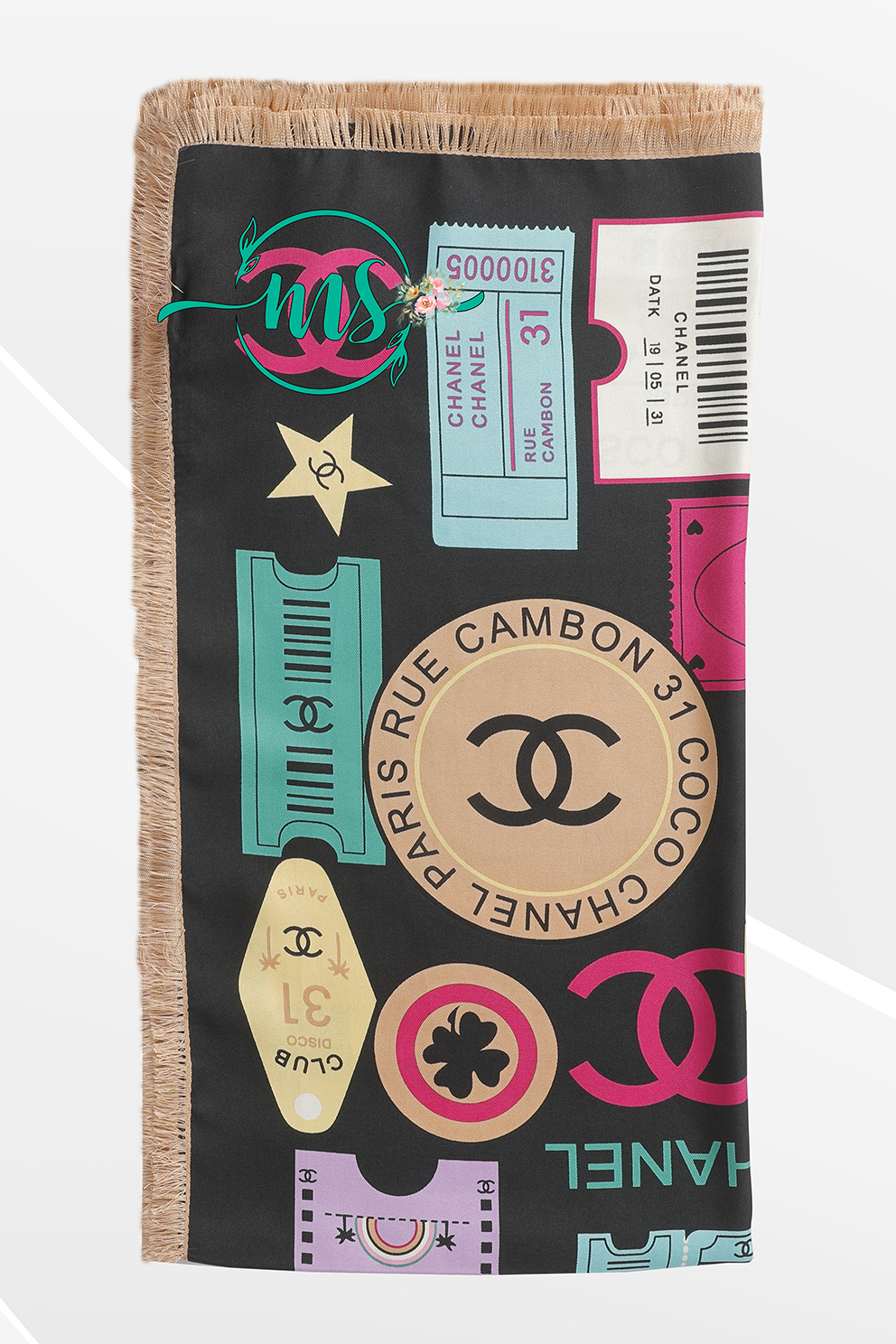 روسری ابریشم طرح شنل رنگ مشکی کرم سرخابی