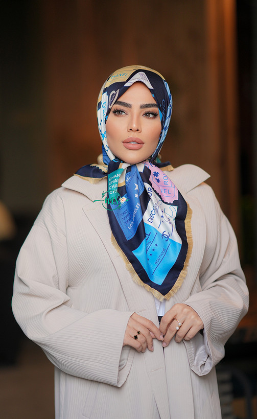 روسری ابریشم طرح شنل رنگ سرمه ای