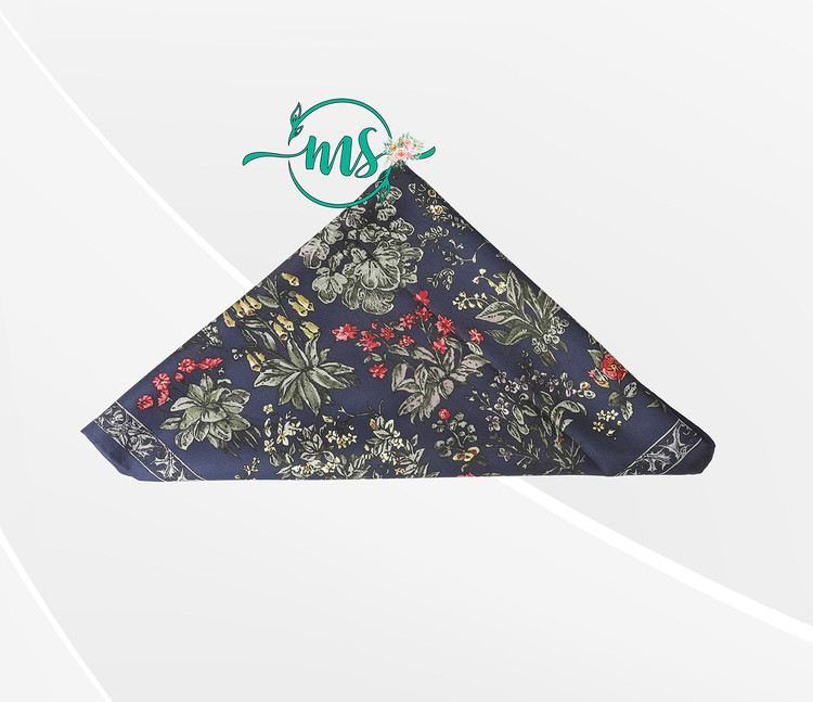 روسری ابریشم طرح دیور گل ریز حاشیه دار رنگ سرمه ای