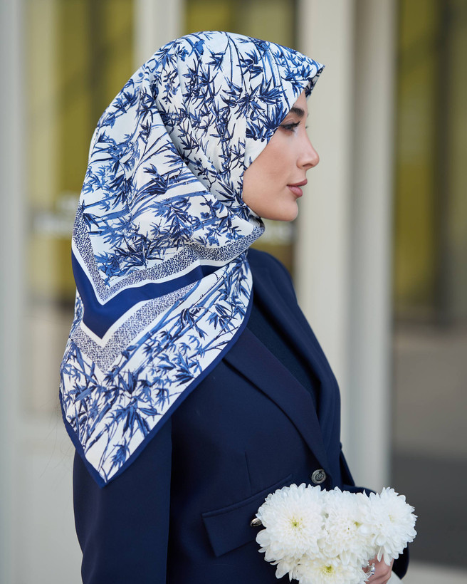 روسری ابریشم طرح دیور 5401 سرمه ای