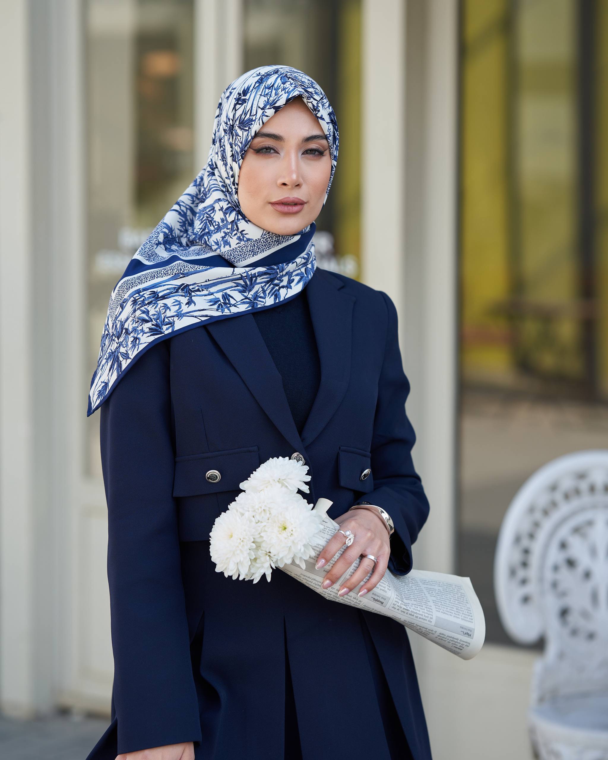 روسری ابریشم طرح دیور 5401 سرمه ای