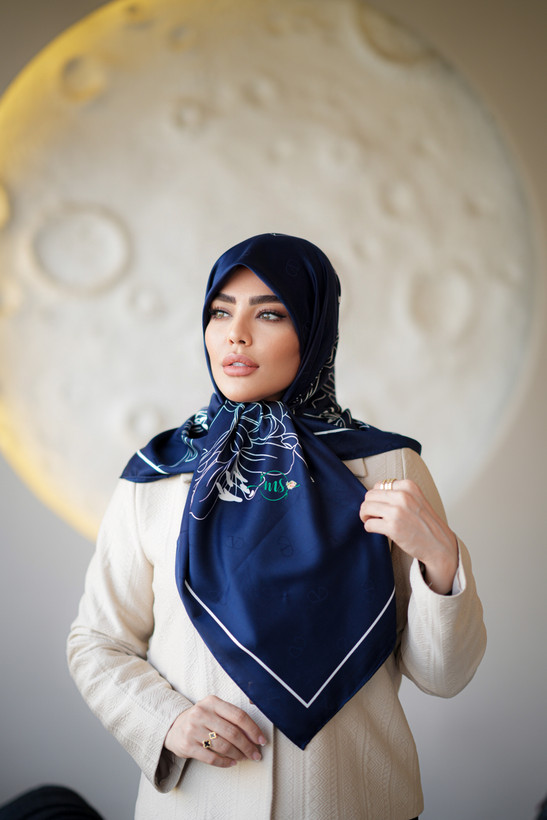 روسری ابریشم ژاکارد طرح گل لیلیوم والنتینو رنگ سرمه ای