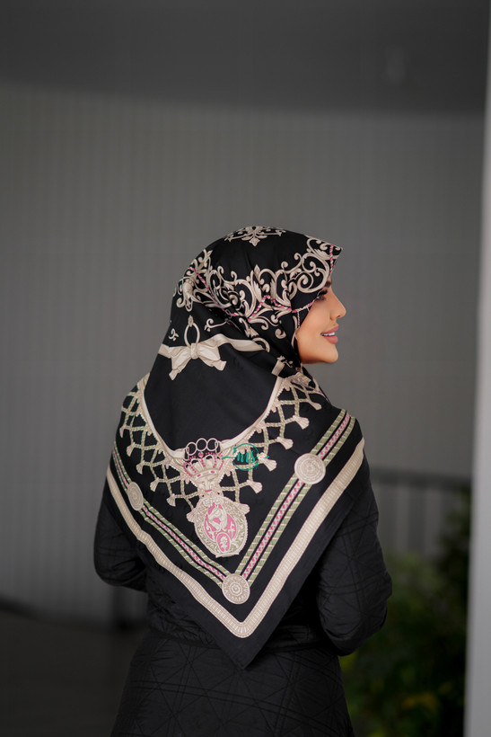 روسری ابریشم ژاکارد طرح پاپیون رنگ مشکی کرم ارغوانی
