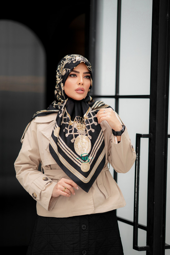 روسری ابریشم ژاکارد طرح پاپیون رنگ مشکی کرم
