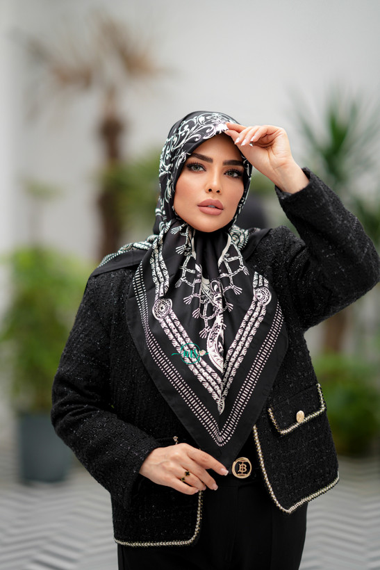 روسری ابریشم ژاکارد طرح پاپیون رنگ مشکی سبز
