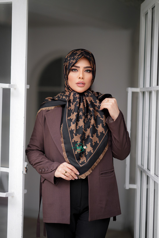 روسری ابریشم ژاکارد طرح پیچازی رنگ مشکی شکلاتی