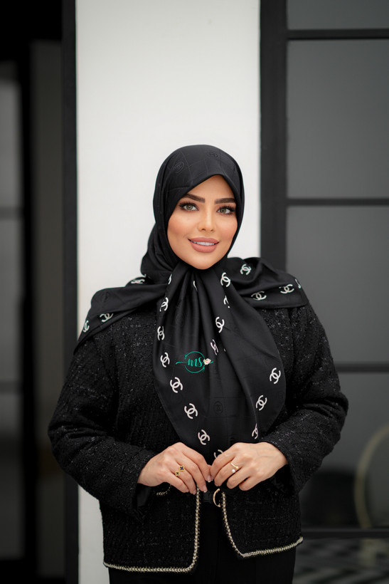 روسری ابریشم ژاکارد طرح شنل حاشیه مارک مشکی سفید