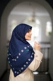 روسری ابریشم ژاکارد طرح شنل حاشیه مارک سرمه ای
