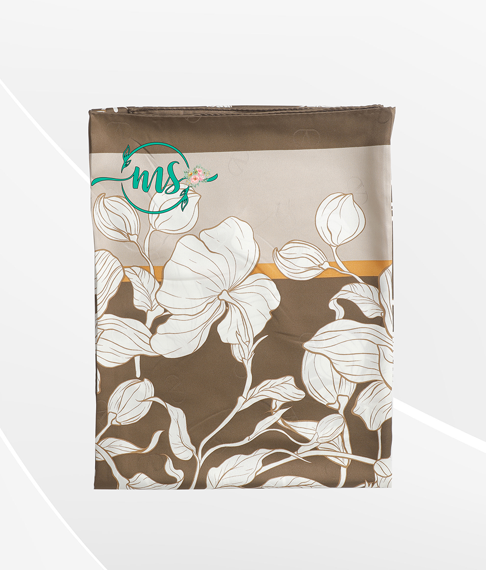 روسری ابریشم ژاکارد طرح گل والنتینو رنگ مشکی طلایی